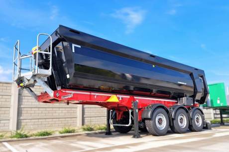 Trojnápravový oceľový vyklápací náves so segmentovou muldou na prepravu štrku, zeminy a iných sypkých materiálov 27m3